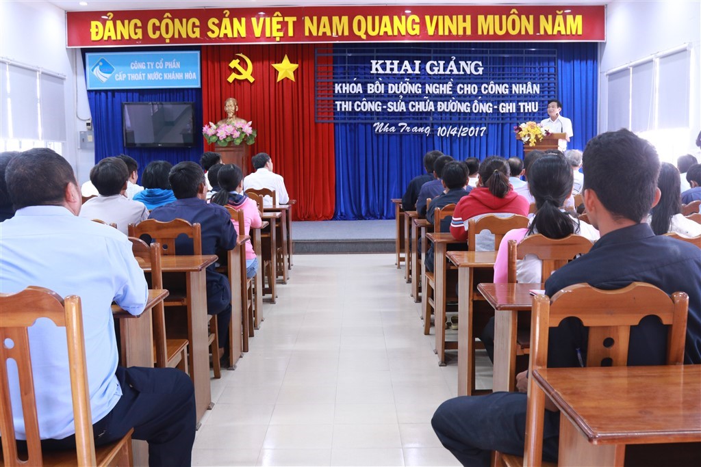 Nhằm không ngừng nâng cao trình độ chuyên môn nghiệp vụ cho cán bộ công nhân viên; trang bị những kiến thức về An toàn lao động, vệ sinh lao động và phòng chống cháy nổ cho công nhân lao động trực tiếp…Thực hiện Kế hoạch đào tạo năm 2017 của Ban tổng giám đốc công ty Cổ phần Cấp thoát nước Khánh Hòa, trong 06 tháng đầu năm 2017, công ty đã tổ chức các khóa huấn luyện tại chỗ và cử đi tập huấn và học tập trung cho nhiều lượt cán bộ công nhân viên công ty về các lĩnh vực: