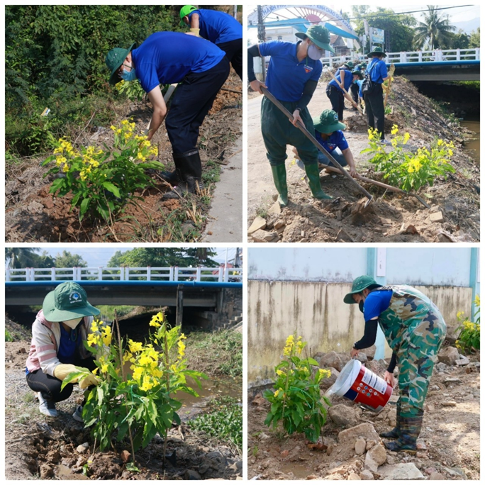 Các Đoàn viên - Thanh niên cùng chung tay “Ươm mầm sự sống” cho cảnh quan đường đi được sạch, đẹp và trong lành hơn.