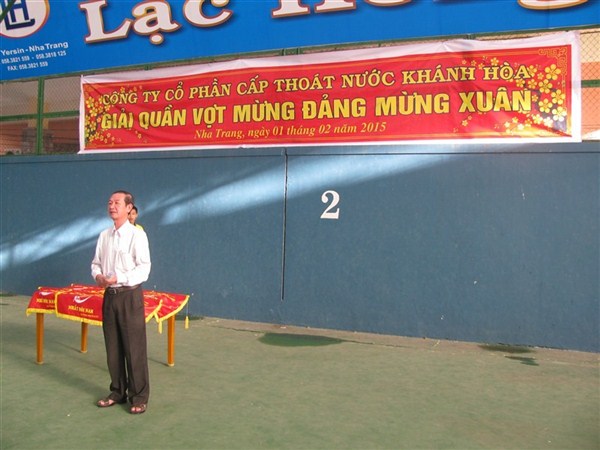 Chào mừng kỷ niệm 85 năm ngày thành lập Đảng Cộng sản Việt Nam, ngày 03/02/1930 – 03/02/2015, chào mừng năm mới 2015, được sự nhất trí của Đảng bộ, công đoàn cơ sở công ty, chi hội quần vợt công ty Cổ phần cấp thoát nước Khánh hòa đã tổ chức giải thi đấu quần vợt cán bộ công nhân viên công ty. Giải đấu khai mạc vào sáng ngày 01/02/2015, có 30 vận động viên đến từ các đơn vị trực thuộc công ty tham gia thi đấu.