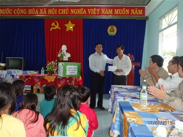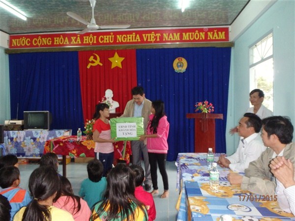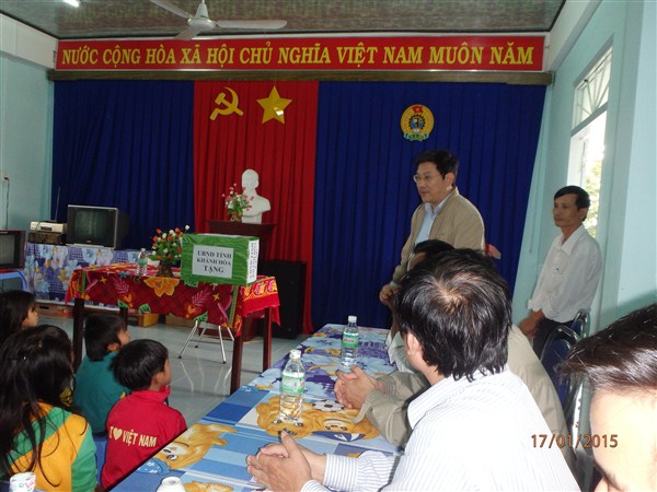Đoàn của UBND tỉnh Khánh Hòa do ông Nguyễn Duy Bắc – Phó chủ tịch UBND tỉnh Khánh Hòa và các đồng chí thuộc UBND tỉnh Khánh Hòa, Liên đoàn lao động tỉnh Khánh Hòa cùng đi. Ông Nguyễn Duy Bắc – Phó chủ tịch UBND tỉnh Khánh Hòa đã ân cần thăm hỏi, và động viên các cháu cố gắng khắc phục khó khăn, chăm chỉ học tập, rèn luyện để trở thành những công dân có ích cho xã hội. Ông Trần Văn Huy – tổng giám đốc công ty đã phát biểu:” Bên cạnh những hoạt động về sản xuất – kinh doanh, công ty cổ phần cấp thoát nước Khánh Hòa rất quan tâm đến các hoạt động từ thiện, hoạt động xã hội. Công ty sẽ duy trì hoạt động này để góp phần với Trung tâm nhằm cải thiện các bữa ăn cho các cháu được tốt hơn.