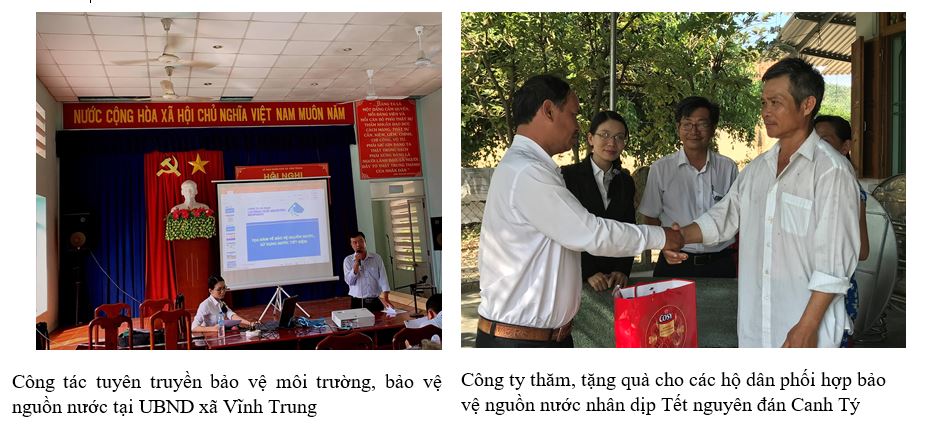 Công ty luôn chủ động phối hợp với cơ quan liên quan: Sở Tài nguyên Môi trường, Ủy ban nhân dân thành phố Nha Trang, Ủy ban nhân dân huyện Diên Khánh, Ủy ban nhân dân xã Vĩnh Trung, Vĩnh Thạnh, Diên An,…trong việc quản lý các nguồn ô nhiễm, thường xuyên tổ chức tuần tra bằng đường bộ, đường thủy dọc sông Cái nhằm bảo vệ, duy trì chất lượng nước, kiến nghị cơ quan có thẩm quyền xử lý các hành vi xâm phạm, gây mất an toàn cho hoạt động cấp nước trên địa bàn do công ty quản lý.