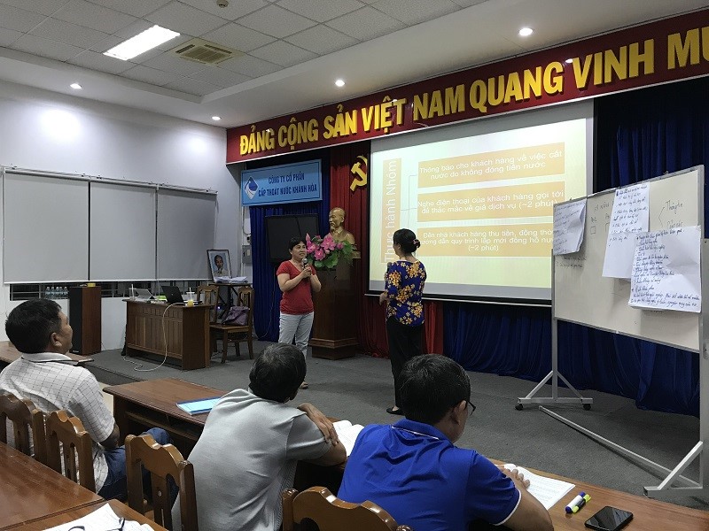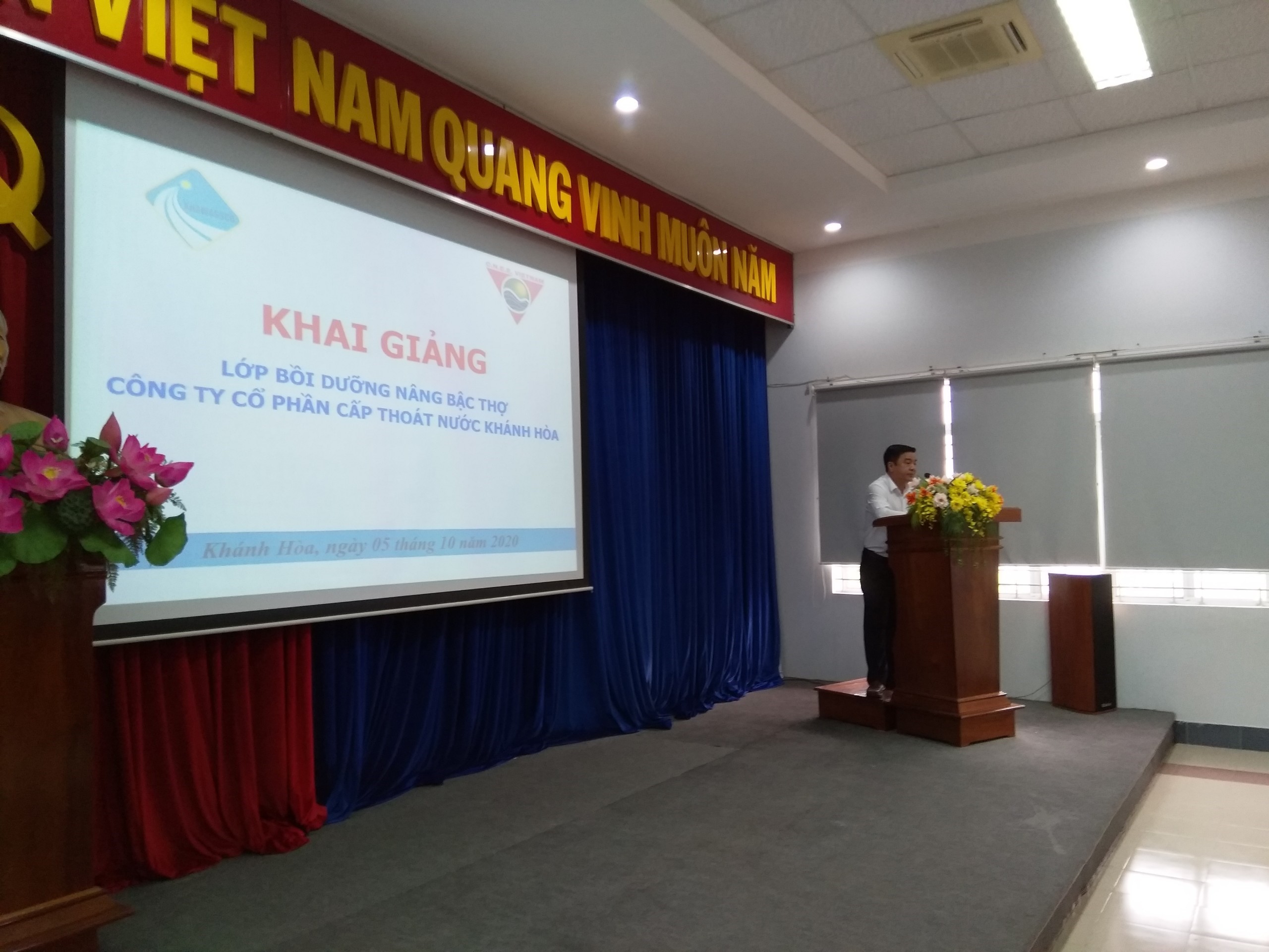 Ngày 05/10/2020, Công ty Cổ phần Cấp thoát nước Khánh Hòa phối hợp với Trung tâm Đào tạo Ngành nước và Môi trường – Trường Cao đẳng Xây dựng Công trình Đô thị tổ chức khai giảng khóa bồi dưỡng nâng bậc thợ cho 55 công nhân các nghề: vận hành xử lý nước, sửa chữa lắp đặt mạng lưới cấp nước và ghi thu tiền nước. Khóa đào tạo diễn ra trong 6 ngày (từ ngày 5/10 đến ngày 10/10/2020), nhằm trang bị kiến thức, kỹ năng phù hợp với tiêu chuẩn, cấp bậc kỹ thuật, trình độ tay nghề của công nhân, nâng cao chất lượng công tác vận hành xử lý nước, sửa chữa lắp đặt mạng lưới cấp nước và ghi thu tiền nước. Với tinh thần trên, các học viên tham gia khóa đào tạo đã nghiêm túc học tập, trau dồi kiến thức, nắm bắt đầy đủ kỹ năng để đáp ứng yêu cầu thực tế đặt ra và làm cơ sở xét nâng bậc nghề đối với công nhân năm 2020. Một số hình ảnh về khóa đào tạo: