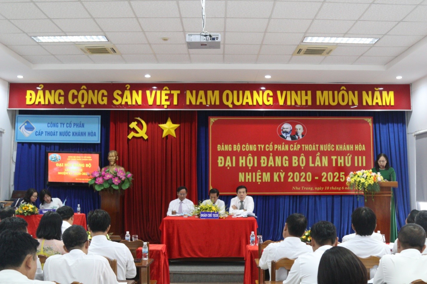 Đại hội Đảng bộ Công ty Cổ phần Cấp thoát nước Khánh Hòa lần thứ III, nhiệm kỳ 2020-2025 đã tổ chức thành công sau hai phiên trù bị (chiều ngày 09/6/2020), chính thức (chiều 10/6/2020).