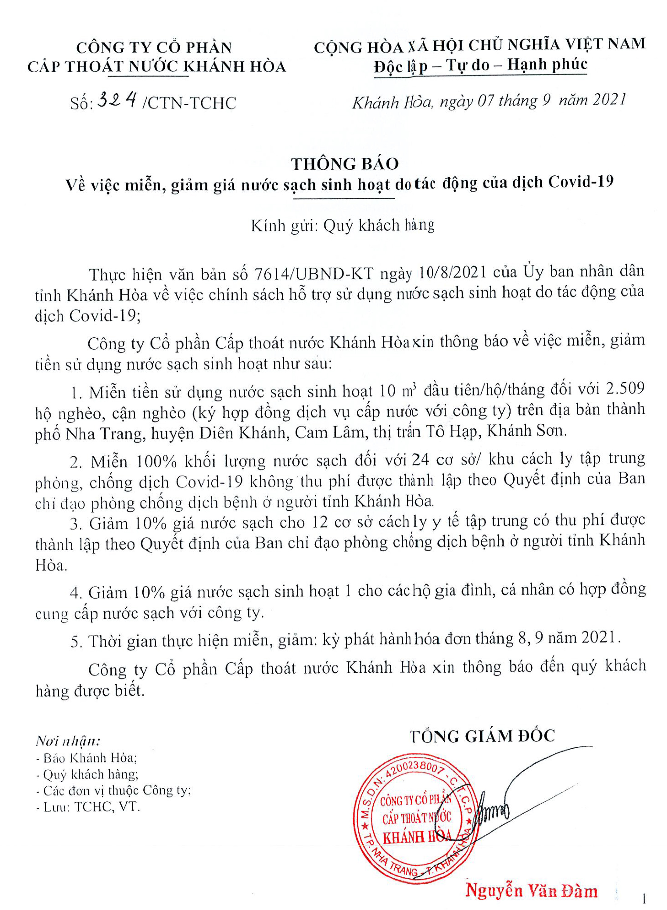 📄 Miễn, Giảm giá nước sạch sinh hoạt do tác động của dịch Covid-19