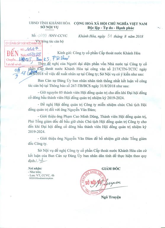 CÔNG TY CỔ PHẦN CẤP THOÁT NƯỚC KHÁNH HÒA