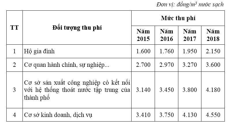 1. Phí thoát nước đô thị theo nghị quyết số 02/2014/NQ-HĐND: