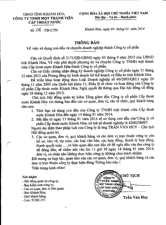 CÔNG TY CỔ PHẦN CẤP THOÁT NƯỚC KHÁNH HÒA