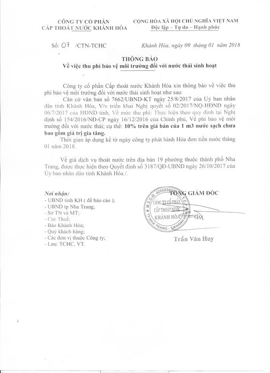 CÔNG TY CỔ PHẦN CẤP THOÁT NƯỚC KHÁNH HÒA