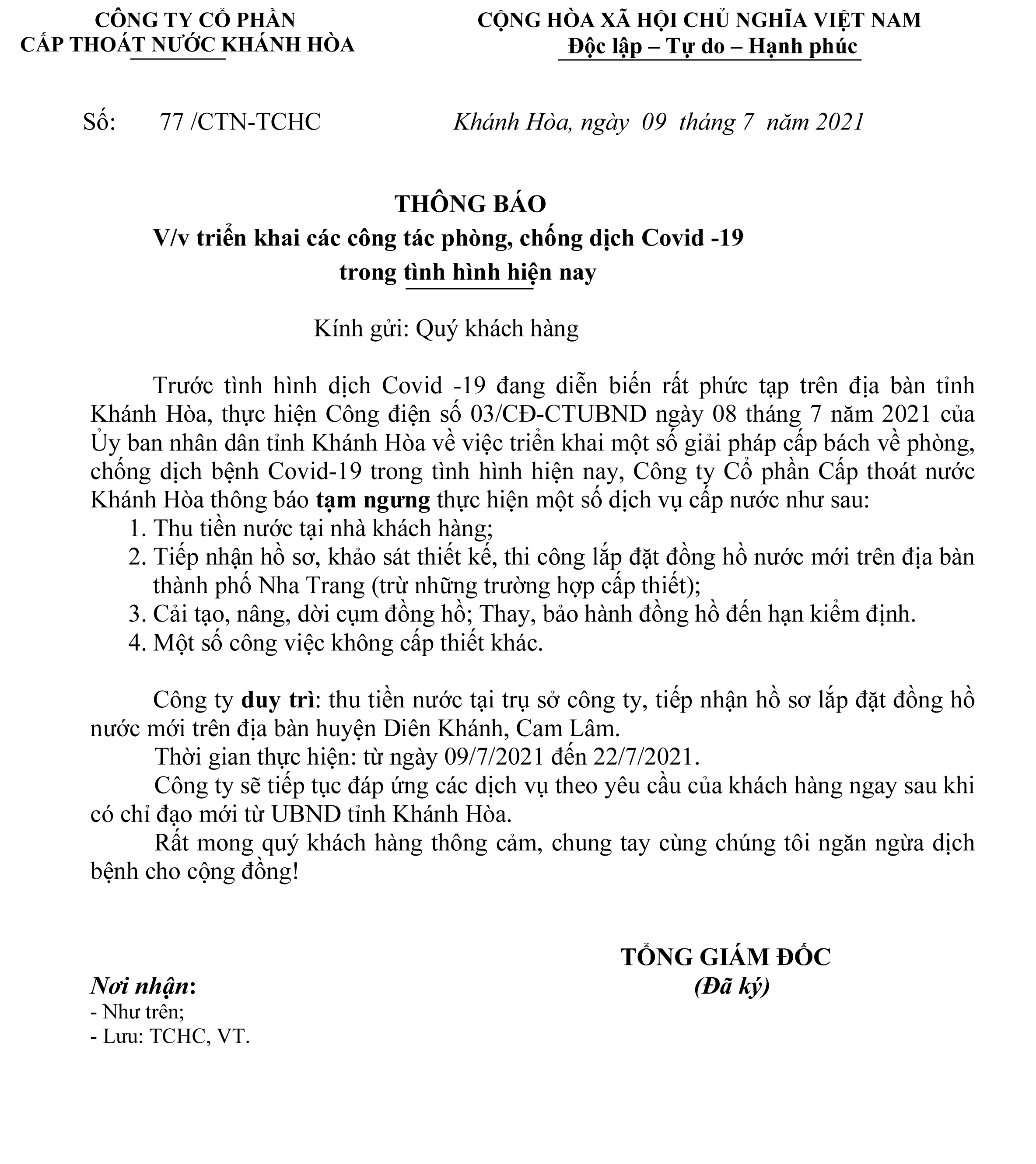 CÔNG TY CỔ PHẦN CẤP THOÁT NƯỚC KHÁNH HÒA